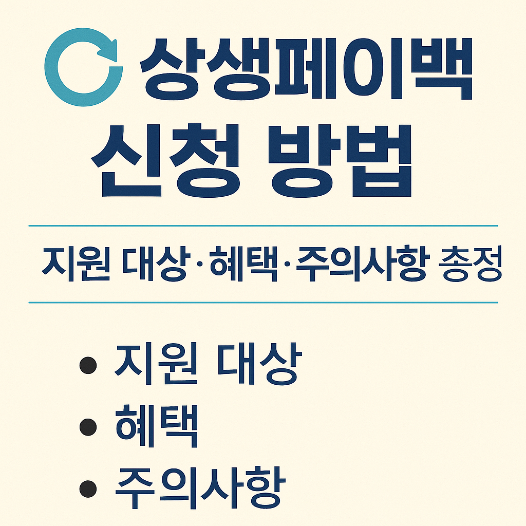 최근 경기 침체와 물가 상승으로 생활비 부담이 커지면서, 정부와 지자체가 함께 마련한 상생페이백 제도가 많은 관심을 받고 있습니다. 상생페이백은 단순한 지원금을 넘어, 지역 경제 활성화와 가계 부담 완화라는 두 가지 목적을 동시에 달성하기 위해 도입된 제도입니다. 오늘은 상생페이백 신청 방법, 지원 대상, 혜택, 사용처, 주의사항까지 한눈에 정리해 드리겠습니다.