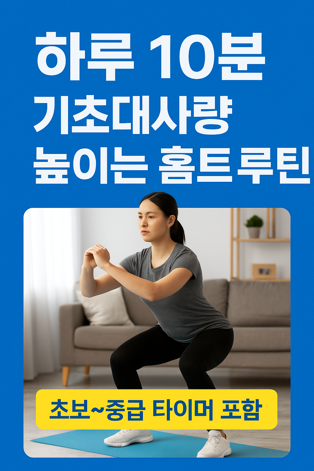 💡시간이 없어서 운동을 미루고 있다면, 10분 근력 중심 루틴으로 시작해 보세요. 전신의 큰 근육을 짧고 강하게 쓰면 **운동 직후 소모 + 회복 과정(EPOC)**으로 칼로리 사용에 도움이 됩니다. 오늘은 초보도 가능한 10분 타이머 버전과 레벨별 대체 동작, 진도 올리는 법까지 한 번에 정리합니다.